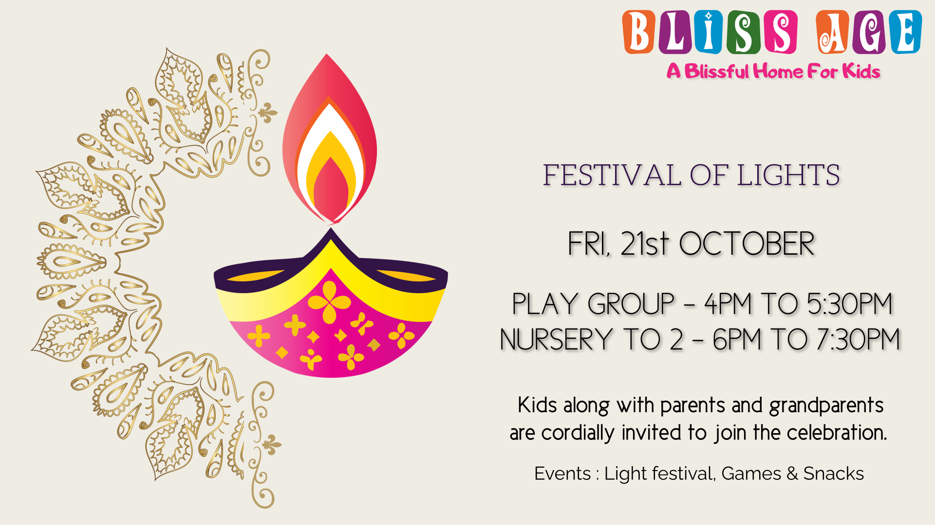 With extreme happiness, we are inviting you along with our kids to join the Diwali celebration at Bliss Age School.